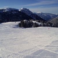 Počasí bylo vcelku slušné, i když na konci týdne už byla docela kosa. Ale pondělí nám připravilo takový luxus v podobě azurového nebe, celodenního sluníčka a k tomu čerstvý prašan. Sjezdovky byly prostě našlapané, nikde žádná ledová plotna, upravená peřina a mimo sjezdovku to bylo ne našlapané, ale přímo nadupané. Prostě lyžařský orgasmus jaký jsem ještě nezažil. Už minulý rok jsme měli štestí na čerstvý sníh v Itálii, mohlo by se z toho stát pravidlo.