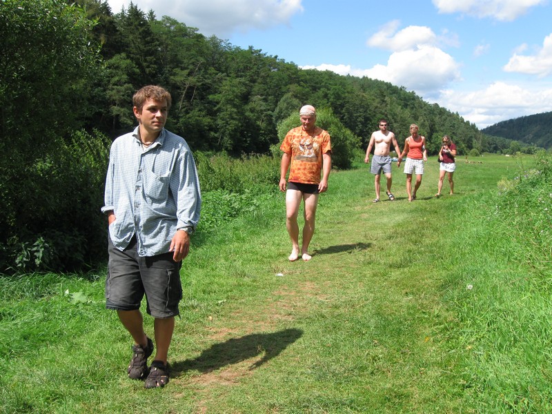Vejlet na Berounku. Odvážní plavci a plavkyně na divoké řece. Nebezpečné piraně skáčou na palubu. První den naše plavba startovala v Liblíně a končili jsme v kempu u Zvíkovce. Počasí přálo natolik, že některým členům posádky sežehlo slunce nechráněnou kůži tu na nohou, tu na zádech, ale spásná voda Berounky odpoledne ochladila rozpálená těla. Cestou samozřejmě nechybělo množství zastávek na občerstvení a doplnění tekutin. Pitný režim jsme určitě nepodcenili…