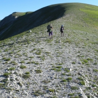 Vstávám před šestou, udělám ohýnek na ranní polívku a kávu. Kouknem do mapy a vyrážíme do sedla Fca di Sinda (1.794 m). Traverzujeme na M. delle Rose (1.861 m), pokračujem kolem M. Lieto (1.944 m) do sedla Forca di Gualdo (1.496 m). Zde mezi autama běhá liščí celebrita. Je tu také voda, kterou využijeme k osvěžení. Pokračujem po asfaltce do Rifuge Albergo La Baita (1.651 m), kde si dáváme kávu. Před námi je další cíl… M. Porche (2.233 m). Dáváme v tom horku siestu a v 16 hod vyrážíme. V sedle v 2.000 m necháváme batohy a polehku se vyšvihnem na M. Porche a dáváme se překrásnou ostrou hřebenovkou směrem na Mt. Sibilla (2.175 m). Lucka s Matějem v půlce otáčejí a jdou zpět. Dojdu k Sibille a zpátky to už drtím silou vůle! Naštěstí vydržela a v sedle pod M. Porche za tmy rozděláváme stan a usínáme. Matěj po celý den úžasný. V noci ze spaní vykřikuje kouzelné hlášky… např.: „Ještě 50 m a 20 cm a dál už ne!!“, „Do kopce ne, dolů jo!!“…!