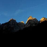A tak po klasickém nočním tranzitu, zcela čerství a nadržení, razíme nekonečným nástupem na rozcvičkovou vynýtovanou pětečku Gosausee-Triathlon. Linie je jasná už zdálky, ale jak se pod ní dostat? Inu po hodině bludné šlapačky voláme do ČR Jarči, aby nás naguglila na správný chodník pod stěnu. Konečně jsme on-line, slunéčko začíná svítit a my se pomalu šoustáme těmi kamennými rourami. YES WE ARE PIPE CLEANERS!!! Wow a máme tu podvečer, slunéčko pomalu zapadá, ale nám nestačí. Poté co jsme vyčistili všechny trubky, korunujem to jebanicí urostlou klečí, která nás vyplivne kósek pod Adamekhütte. Slunce je fuč, tma na krku a od ledovce jde pořádná kosa = ideální čas na sestup s převýšením 1200m! A tak se po 36-i hodinovém triatlonu (driving/hiking/climbing) zavrtáváme do spacáku v kufru Šípáka… myslím, že jsme nestačili ani požvýkat hrozinku a už sme byli tuzí.