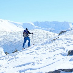 Svób po delší době vyvenčil svoje ultraširoký prašanovky. Vůbec se mu nedivím… na ty nadejchaný hromady, kterýma se pomalu prokousáváme, jsou ty Line ideální… jen se podivuju tomu, když mi po chvíli sděluje svou obavu, jestli mu na nich vydrží to vázání. Zahejbá nohou a já mám pocit, že to snad ‚drží‘ jen na dvou šroubkách, ke kterým se navíc musíš co minutu modlit :o) Obavy se potvrdily cca hoďku cesty před spásnou budkou. Vazko šlo do kopru… teda majitel ho nechal i s děravou lyží u nejbližší skalky! Druhou jakž takž funkční lyži jsem, kdoví proč, nafasoval na svůj bágl… čímž ten ještě víc ztěžkl, nicméně při pohledu na Svobyho, kterej se bořil téměř po pás, při pokusu udělat alespoň malej krůček, jsem to ani necítil :o) Snažil jsem se do toho víc dupat, aby má stopa byla nosnější, ale moc jsem mu tím nepomoh‘. Raději jsem prošlapával dál, po nějaký době odhodil bágl s lyží a vracel se po stopě k tomu nešťastníkovi, odlehčil ho o vepříka a dal si to ještě jednou, ba zašel ještě dál, a pak se vracel pro svou almaru… a takhle několikrát, dokud jsme společně nestáli před vytouženou budkou! Teď už jen lopatou vysvobodit dveře ze zajetí stoleté návěje a s úlevou vklouznout do relativního tepla… venku mohlo bejt optimisticky tak -15°C. Hoši dorazili ne dřív jak za hoďku… už v tom úvodním krpálu zaostávali a i přes naše trable a prošlapanou stopu nestáhli náš náskok… ba co víc, někde cestou zbloudili a ještě si kus zašli. Shledání to bylo šťastný, ale žádná ‚párty‘ se ten večer nekonala. Noc byla chladná… venkovní teplota hravě klesla pod -20°C!